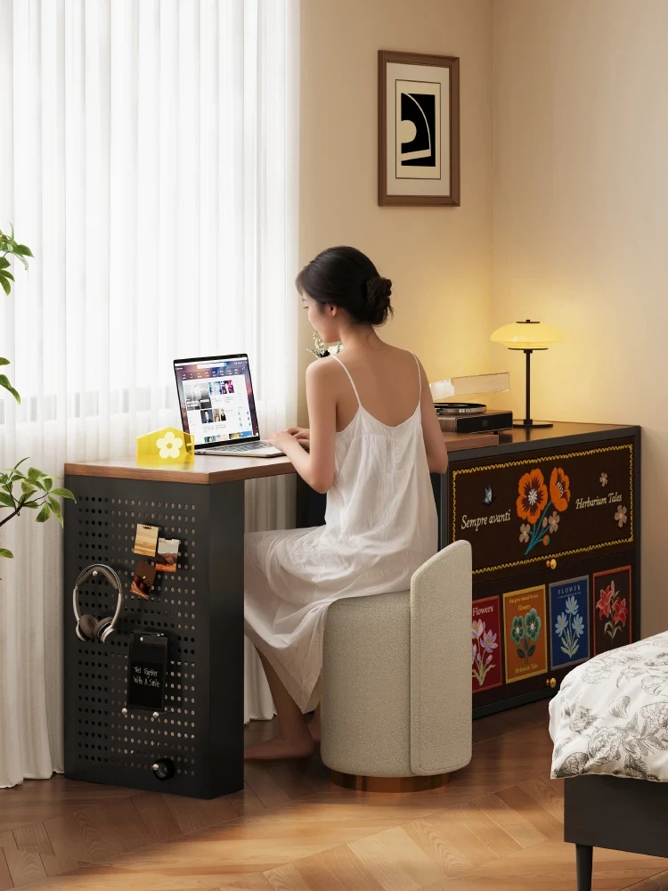ミスタ中古風カーボンスチール製ドレッシングテーブル兼ナイトテーブル コンパクトな寝室に最適!スタイリッシュで機能的な化粧台と収納が一体化したアイテムです。おしゃれなインテリアを実現しましょう!