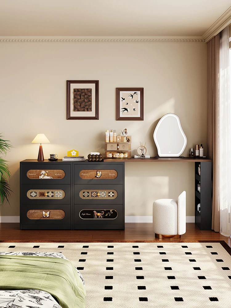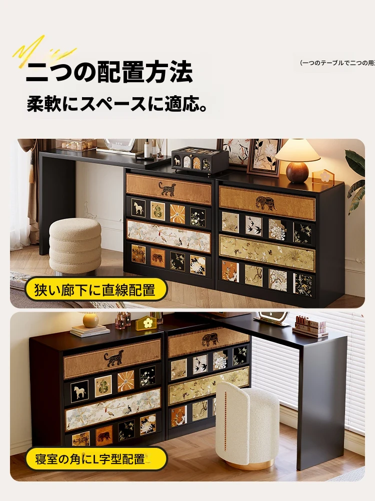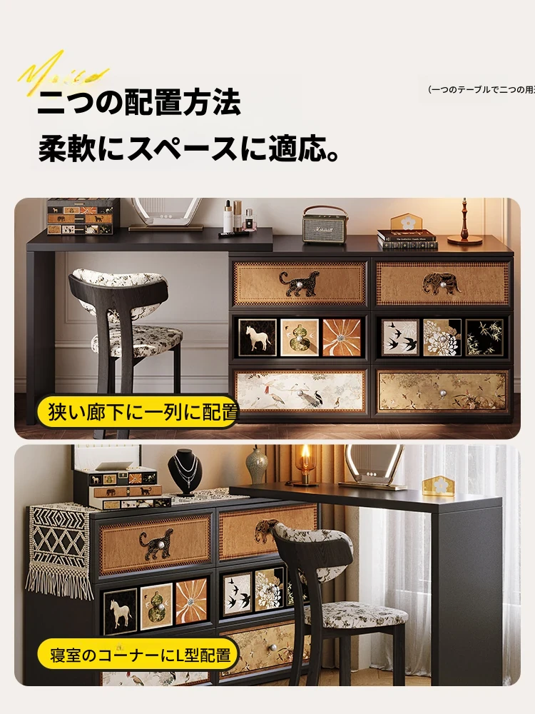 2025年新作!小户型卧室必备的中古風おしゃれな化粧台とチェストの一体型、実木製で収納力抜群!お部屋を素敵に彩るアイテムです。お見逃しなく!
