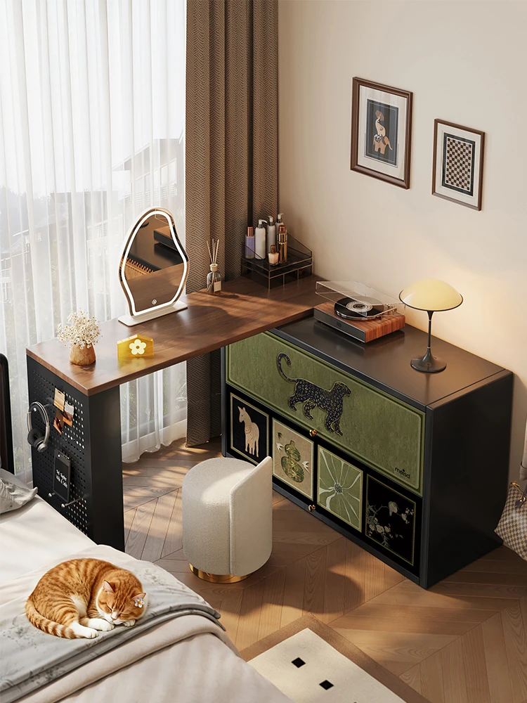 美世达のレトロ風ドレッサー一体型キャビネット - 主寝室にぴったりの木製化粧台、コーナー収納もできる新作!おしゃれで機能的、あなたの美しさを引き立てます。