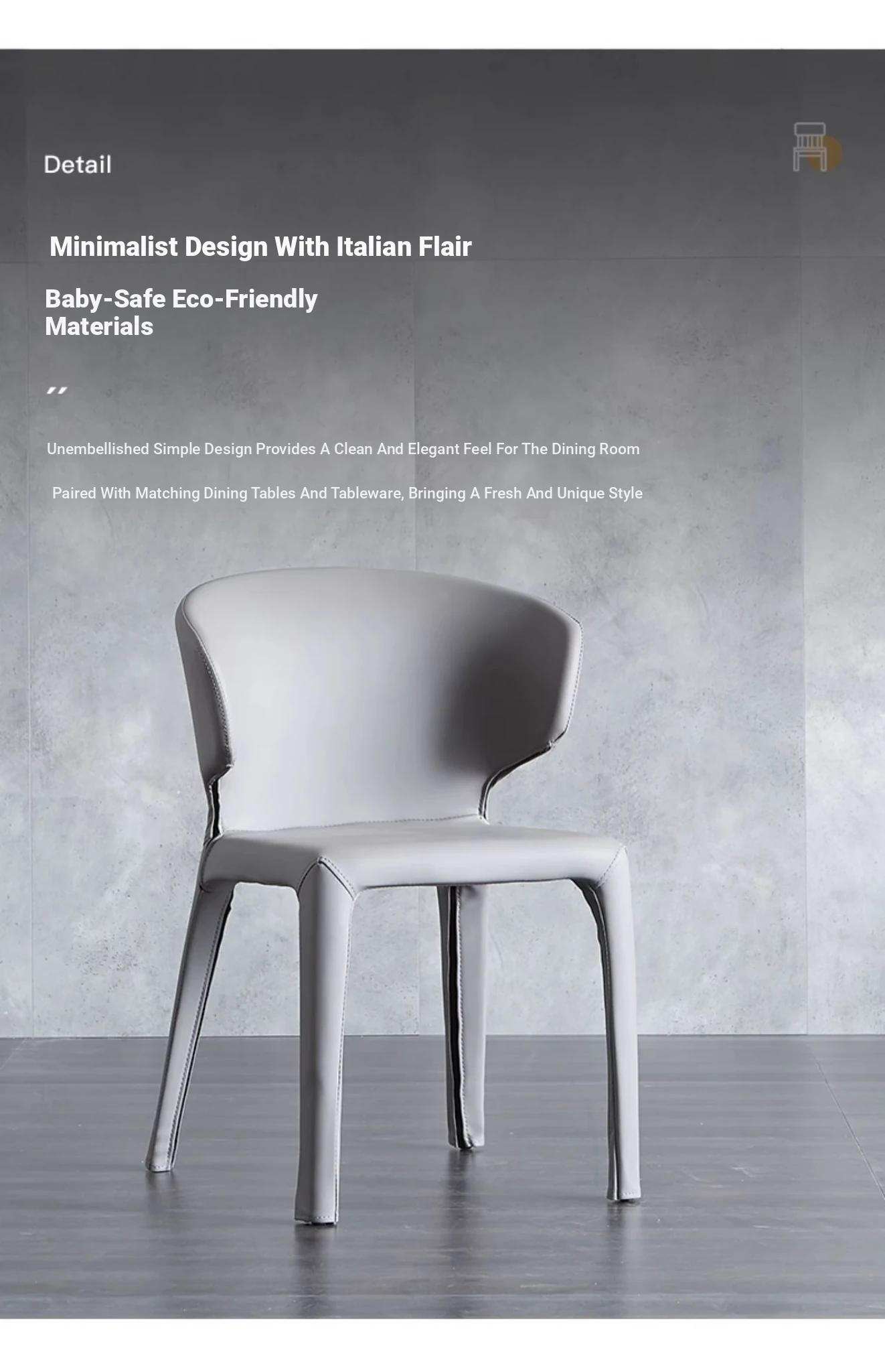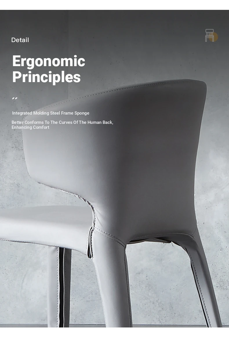 Mijia Home Nordic Dining Chair - Modern Minimalist Light Luxury Stainless Steel Iron Chair, Comfortable Reclining Leather Armchair for Home Use