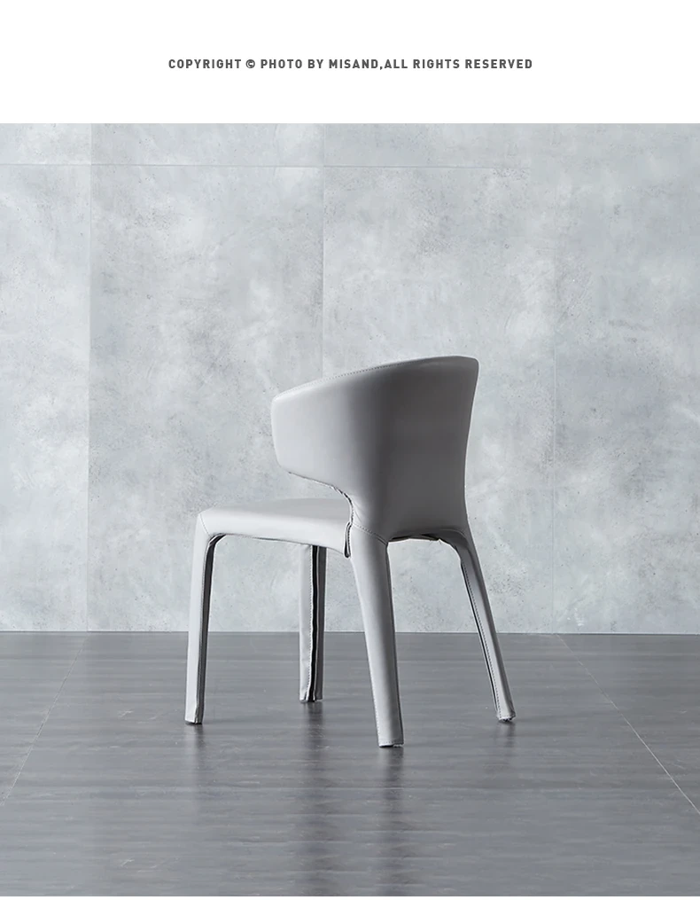 米象家居の北欧スタイルダイニングチェア - モダンでシンプルな軽奢デザイン、ステンレススチールとアイアン製。リラックスできる背もたれ付き、上質なレザー仕上げで、あなたの食卓に洗練された雰囲気をプラスします!
